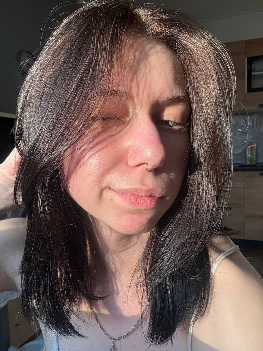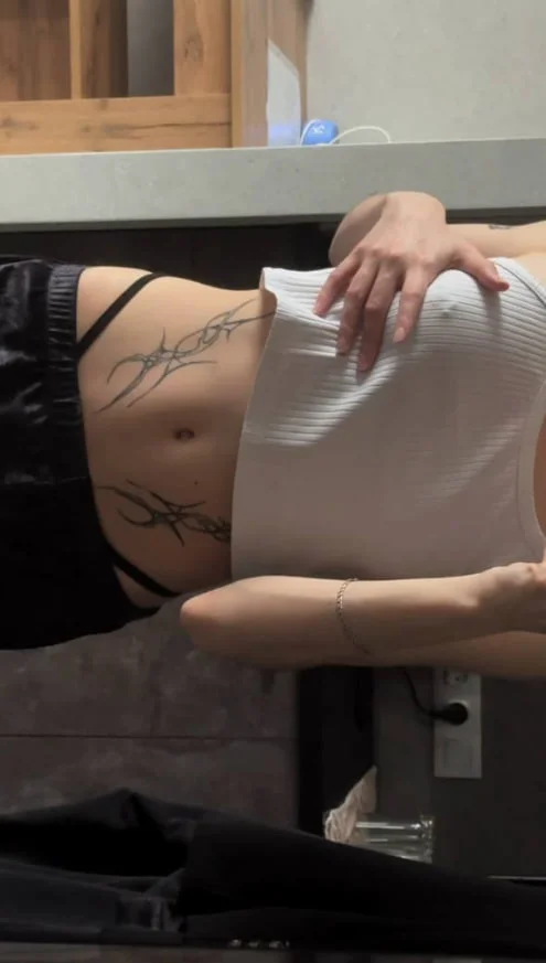 I am slim, with a neat waist and soft body lines. The abdomen is flat, with a slight natural relief. I have tattoos on my skin - they stretch along my sides and add character and a bit of sass to the image. The shoulders and arms look graceful, without excess volume, but not fragile. Overall my figure looks harmonious: A combination of trim and natural, with no inflection in any one direction.