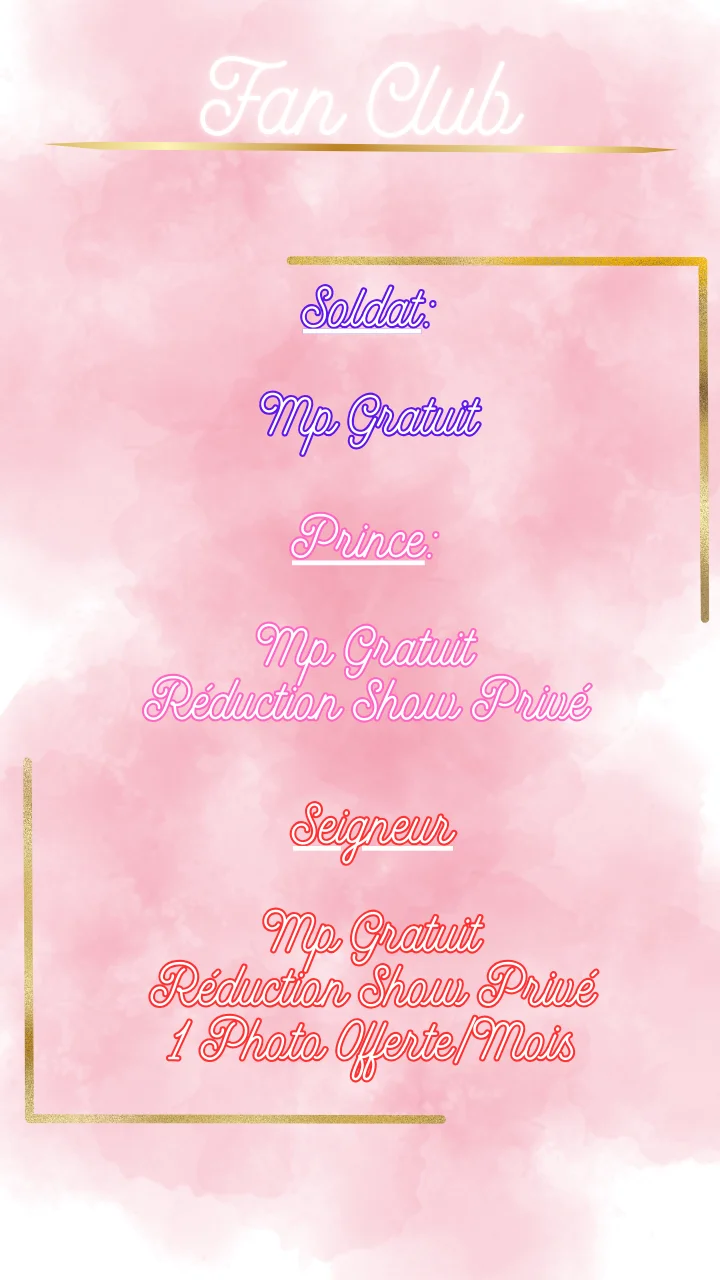 Je propose des shows interactifs avec une roulette de défis, un tip menu bien rempli et des objectifs sexy à atteindre ensemble.